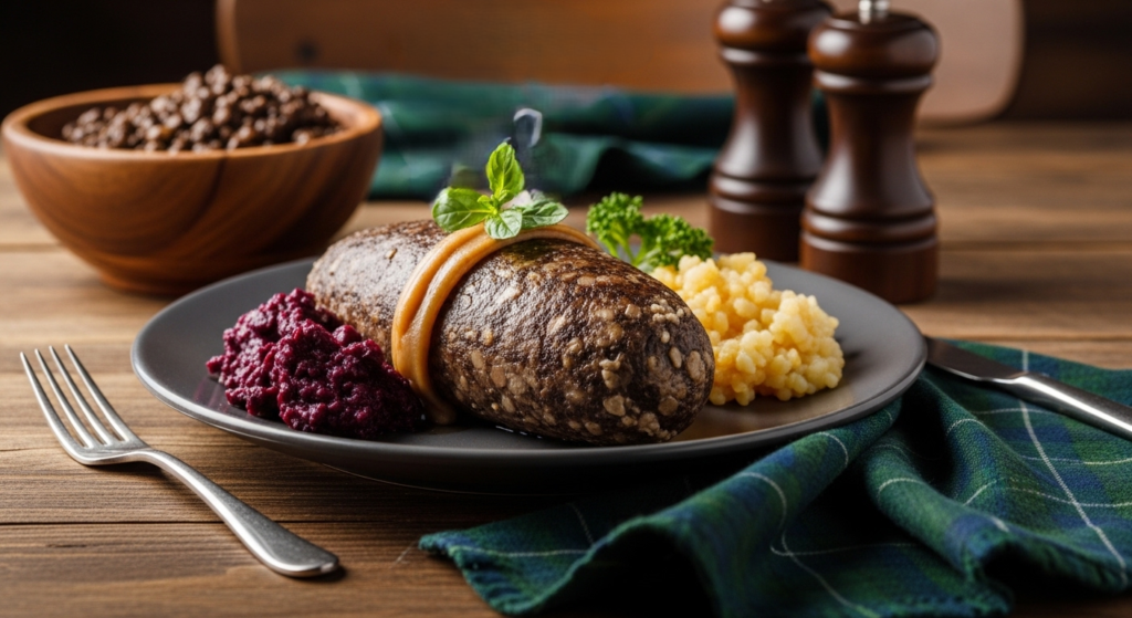 In Scotland they make a savory pudding using sheep heart and liver. This mixture includes oatmeal and onions to give it body. It traditionally cooks inside a stomach lining which creates a firm shape. New visitors often find the look and feel quite strange.