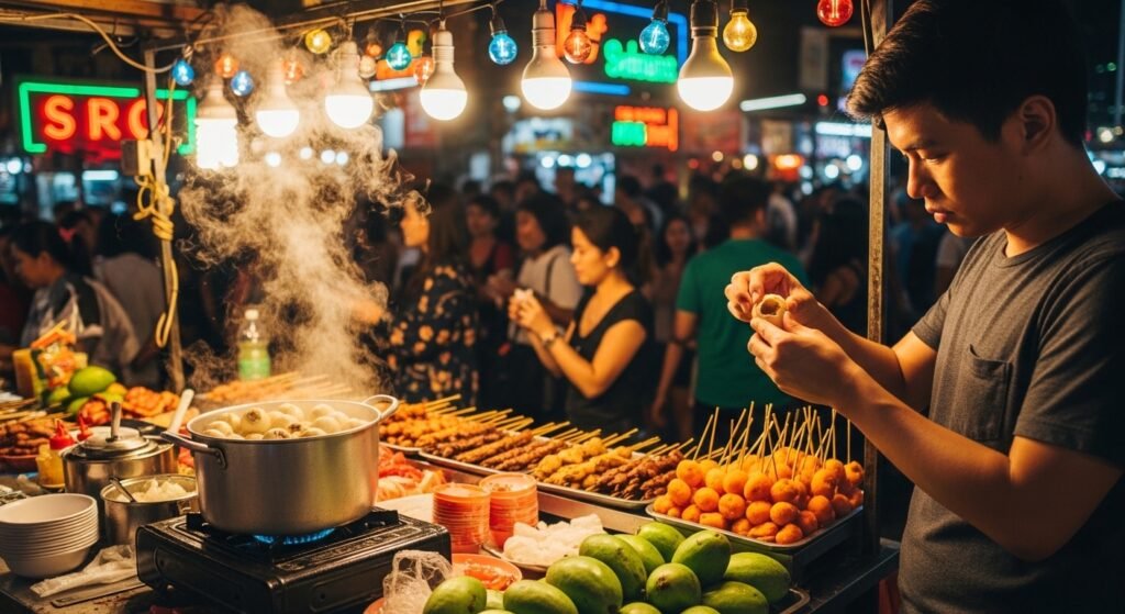 This famous snack looks like a normal egg until you peel it. Inside is a tiny duck that started growing before being cooked. You crack the top and add salt to eat it. It is a very common treat for people there.
