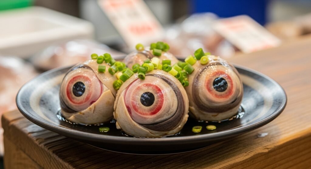 In Japanese markets you might occasionally see large tuna eyeballs being sold which can be quite a surprising sight for regular tourists. They are usually cooked by boiling down and seasoned simply with soy sauce or garlic before being eaten.
