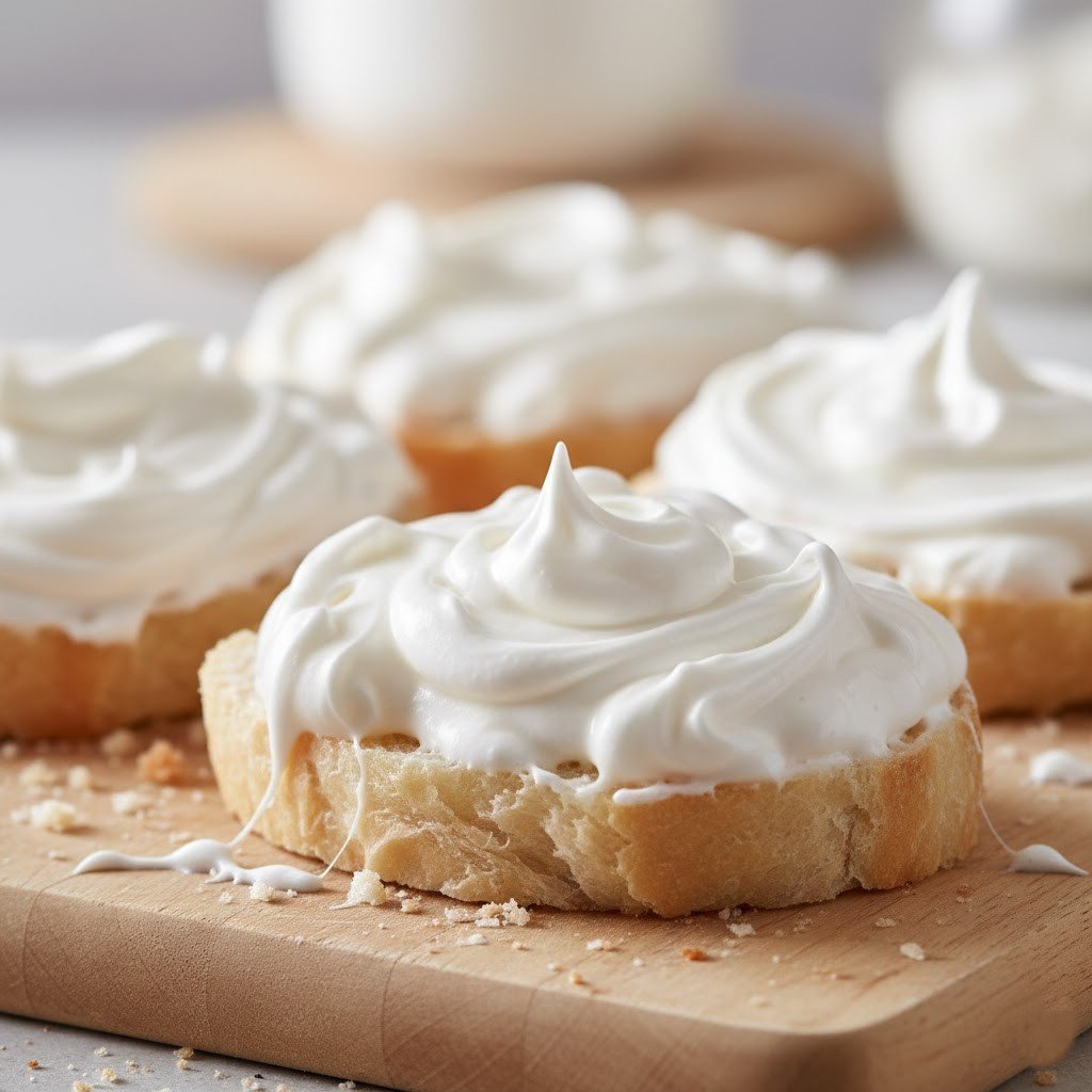 Marshmallow fluff is a creamy, sweet topping that is made up of egg whites and sugar. It is certainly applied in desserts or to breads. In most cultures, marshmallows are not spread, and thus, this item is very foreign and too sweet.