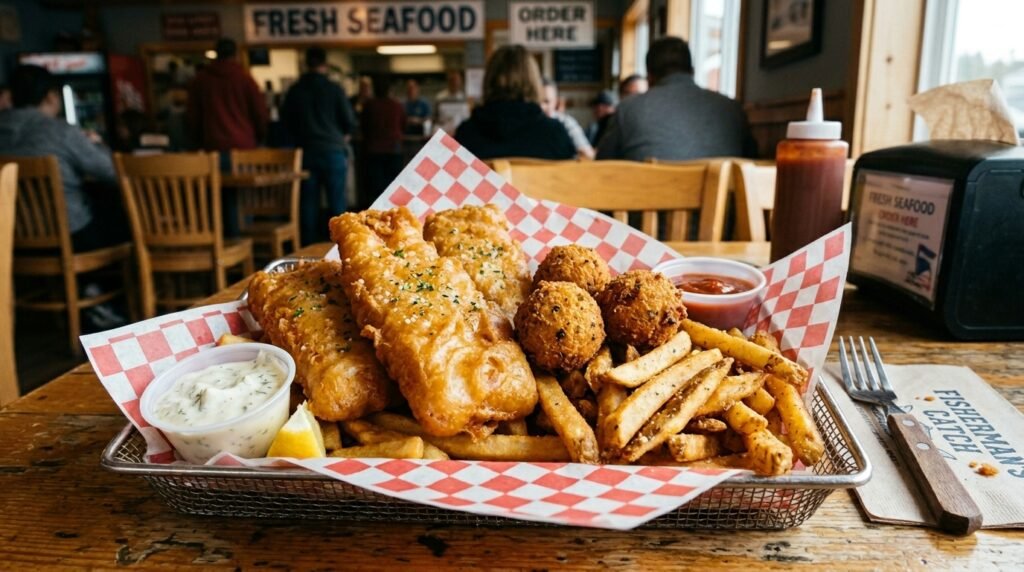 This spot does a Full Boat special with ten whole pieces of True Cod plus fries and chowder which is honestly perfect if you want to share with a friend or just have crazy leftovers. The seafood is caught straight from local Northwest waters so it tastes super fresh and piping hot every single time you roll through to grab a bite.
