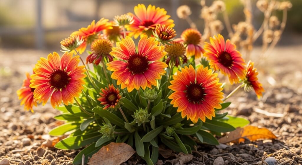 Imagine a sunset right in your garden. This plant has orange and red flowers that love the heat. It is perfect for places where it rarely rains. You do not have to spend time taking care of it. It just grows well on its own.