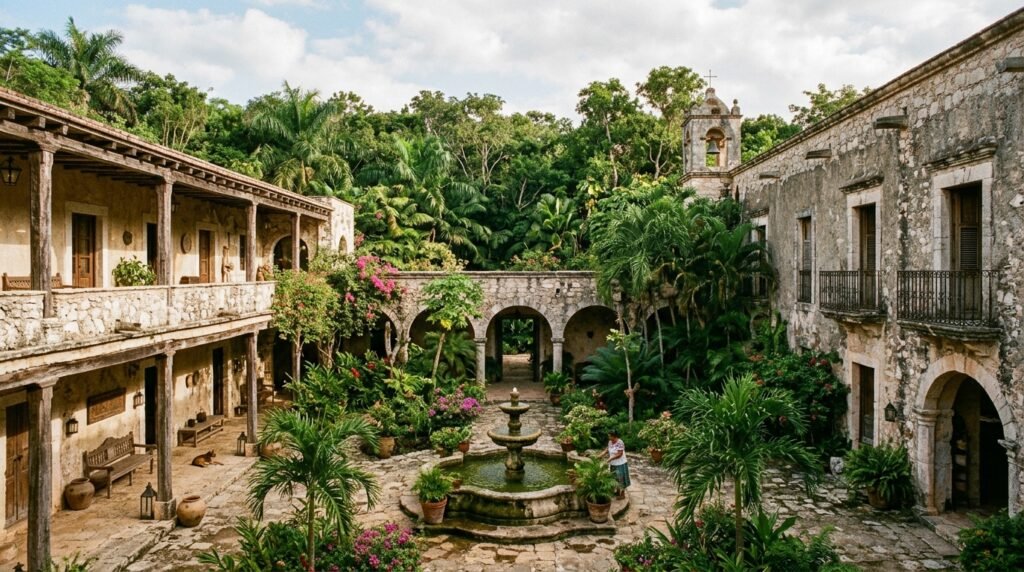 Staying here feels like you are living in a piece of history because it is an actual Mexican hacienda surrounded by jungle. The vibe is incredibly peaceful, and they even have a game room which is a really nice touch if you just want to hang out.
