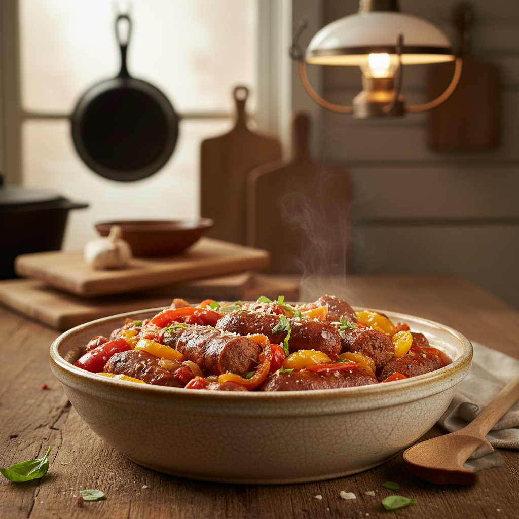 When sausages are put in a cooker with capsicums, onions and tomato sauce a rich creamy texture makes the best savory dish.The long cuisine time allows the flavors to imitate beautifully, performing in a comforting mess that dyads well with chuck pasta, or rice.