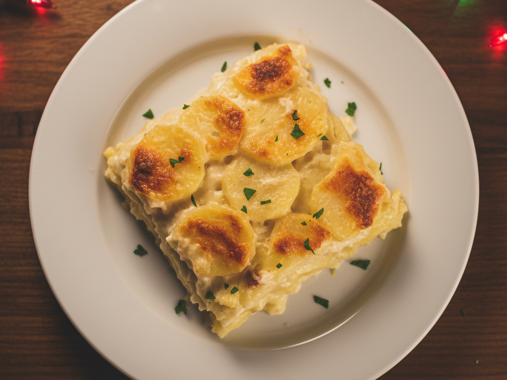 Sliced potatoes are baked in a cream sauce. Easy to prepare, flavours with time and creates a nutty, salty side dish for the holiday that can be reheated and retain its impeccable character and flavour while making an ideal complement to your formal holiday main course.