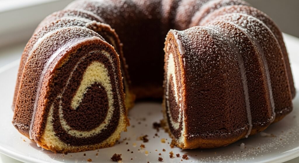 This recipe swirls light and dark batters together to make a very special and tasty dessert. Since the colors mix randomly you never know what the next slice will look like. Most kids think the patterns are fun to see. It is a wonderful way to enjoy two flavors.