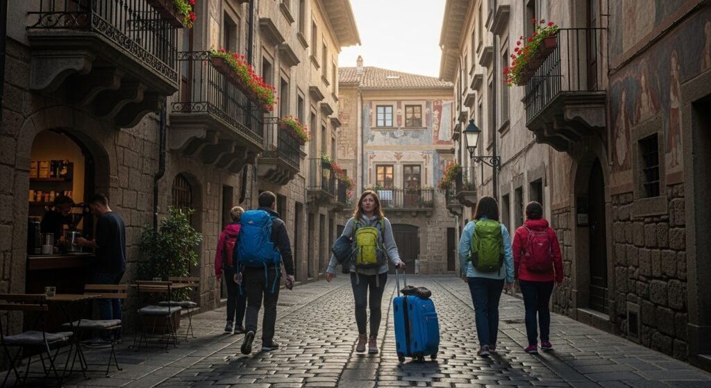 Local people in Europe can often tell when visitors arrive because of the loud sounds their heavy bags make on bumpy stone streets. Many residents choose smaller packs instead. These are much easier to carry up the narrow stairs found inside older buildings in most cities.