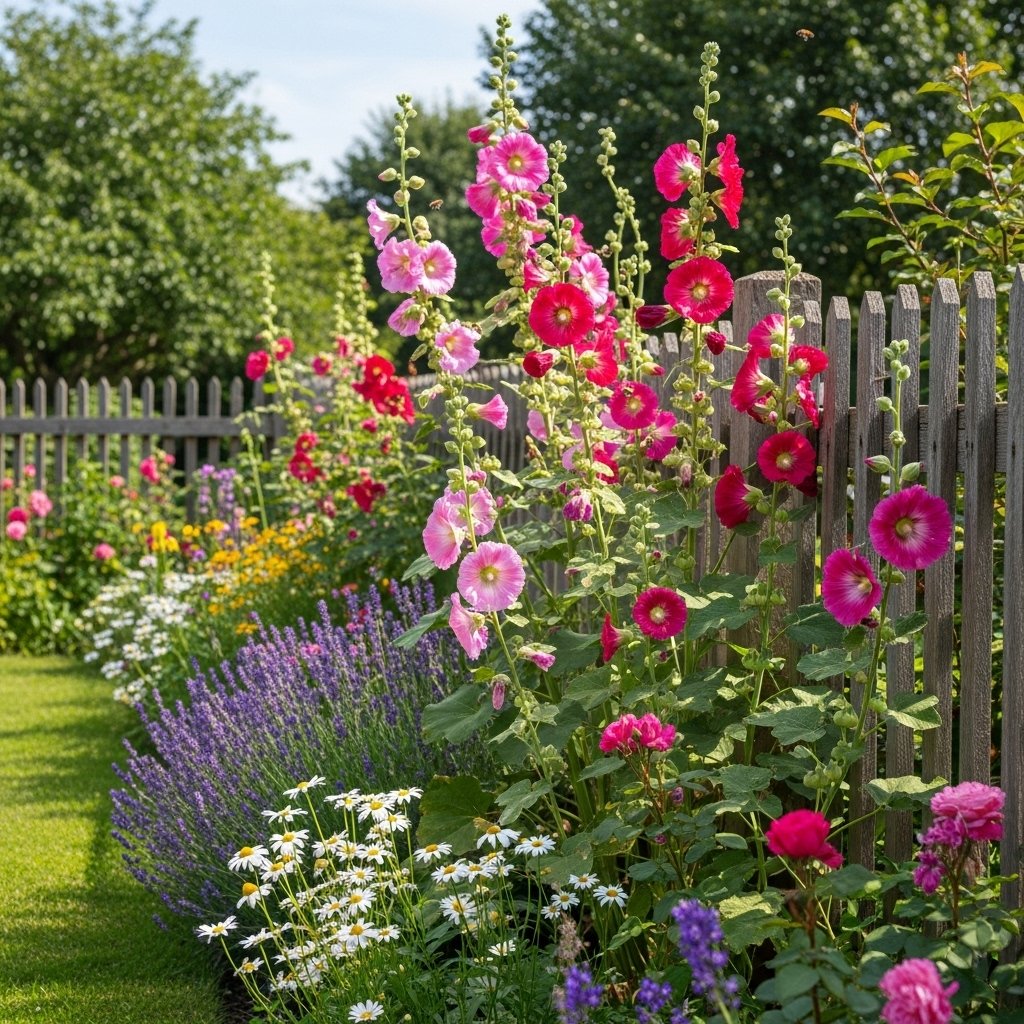 Hollyhocks are getting popular again because they look great in backyards. These tall plants grow high and look nice near fences. They make a garden feel like an old cottage and help bring bees or butterflies to your home. People usually plant them in back rows.