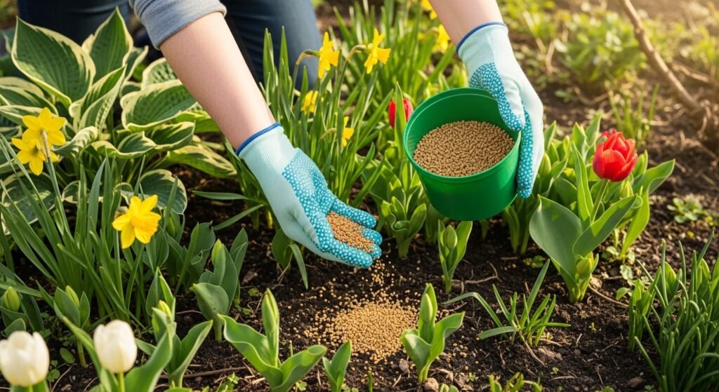 Fertilizer once a season helps them grow, especially by late March or early April. A single sprinkle of well-rounded garden mix each growing season tends to hold foliage in good condition.