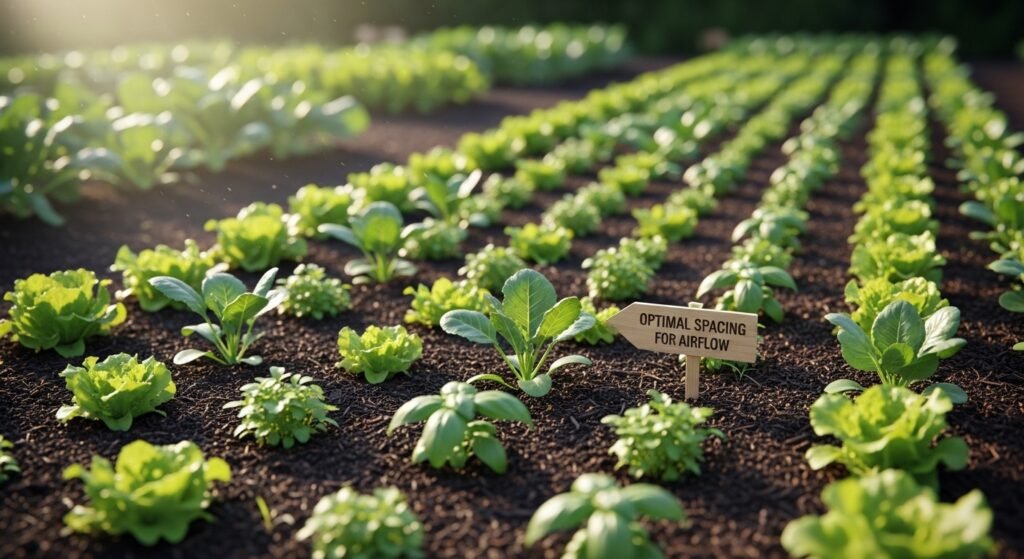 Leaving just under a foot between every plant allows space for spreading during growth. Air moves more freely this way, reducing chances of mold or rot where moist leaves press against one another.