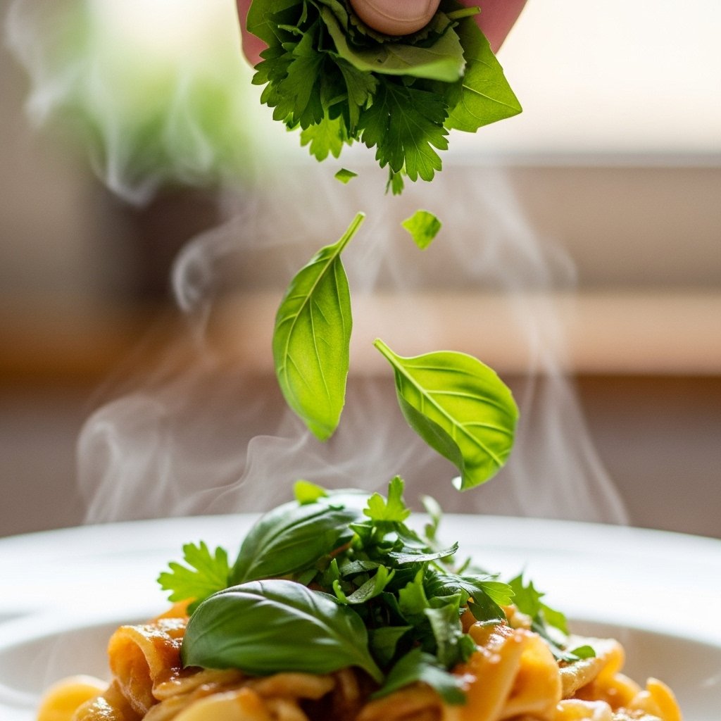 Adding some fresh basil or parsley right before you eat can change a whole dish. These green leaves give off a nice smell that dried ones just don’t have. They also help make your dinner look pretty on the plate which is always nice.