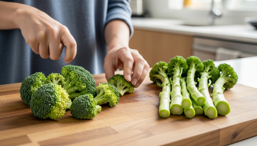 Fresh broccoli is more most excellent in terms of texture and taste in comparison to frozen. Chop florets into small, even size so that they cook at the same time. A bit of the stem can be added to it, and waste is minimized.