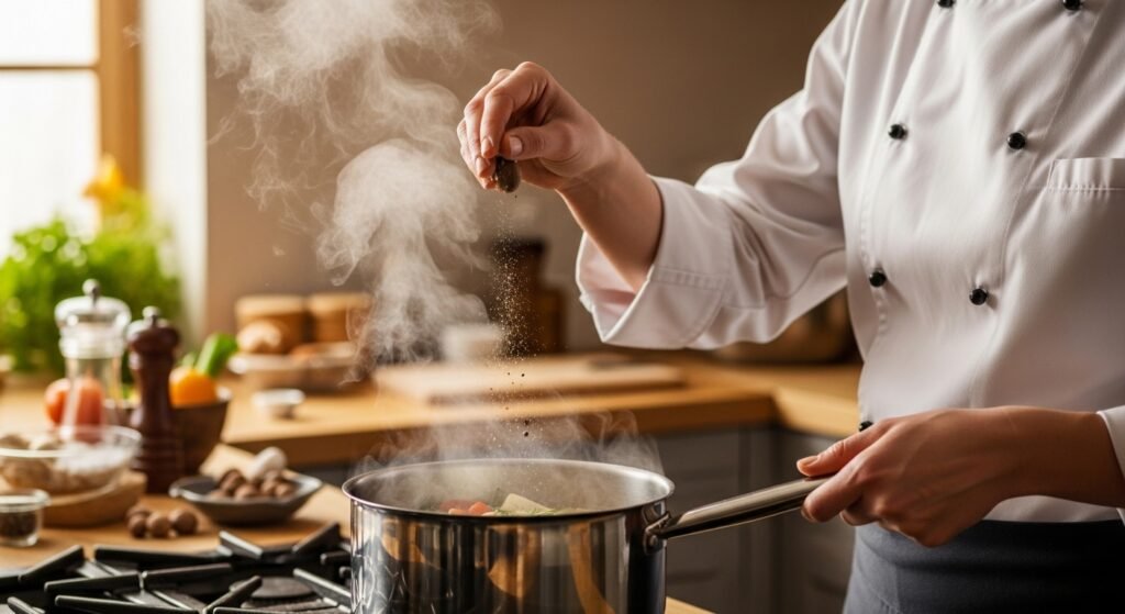 It is enriched with salt, black pepper, and a pinch of nutmeg. Sample the taste and then change the seasoning level. Balanced seasoning gives the soup the restaurant quality.