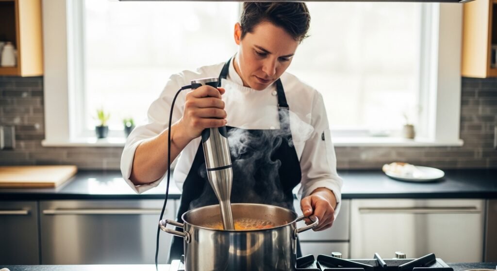 Some want a soup that is all smooth ,and others love small chunks. Partial blending should be done with an immersion blender. This process enables you to manipulate the ultimate consistency.