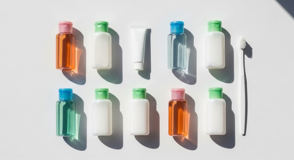 Big bottles of soap and hair products are way too bulky for a single bag. You should get small travel containers instead. These little bottles let you bring what you love without wasting space. Filling them up at home is easy and keeps things organized.