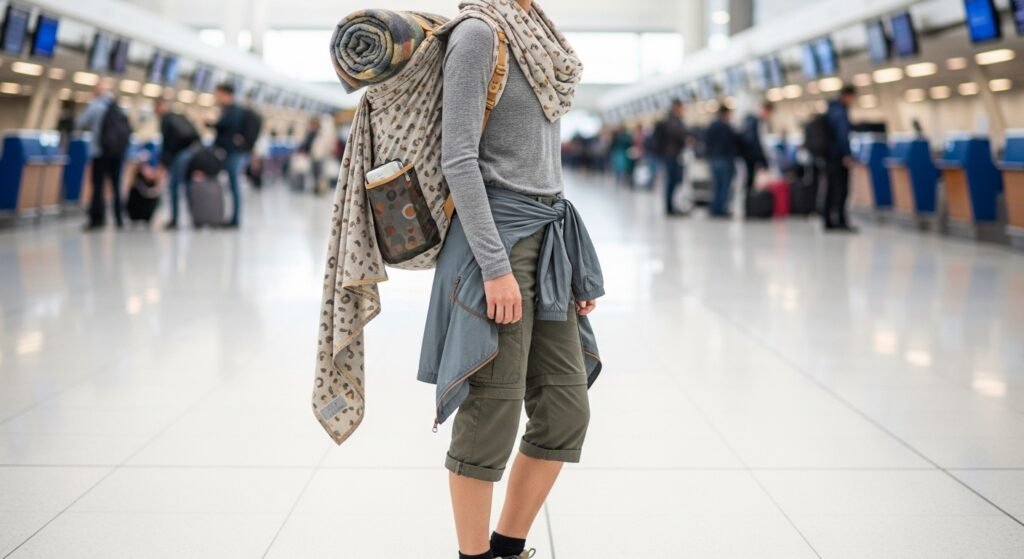 Find clothes you can wear to a nice meal or while exploring outside. A simple scarf is perfect since it changes how you look instantly. You can also use it to stay warm like a blanket when the airplane gets really chilly up high.