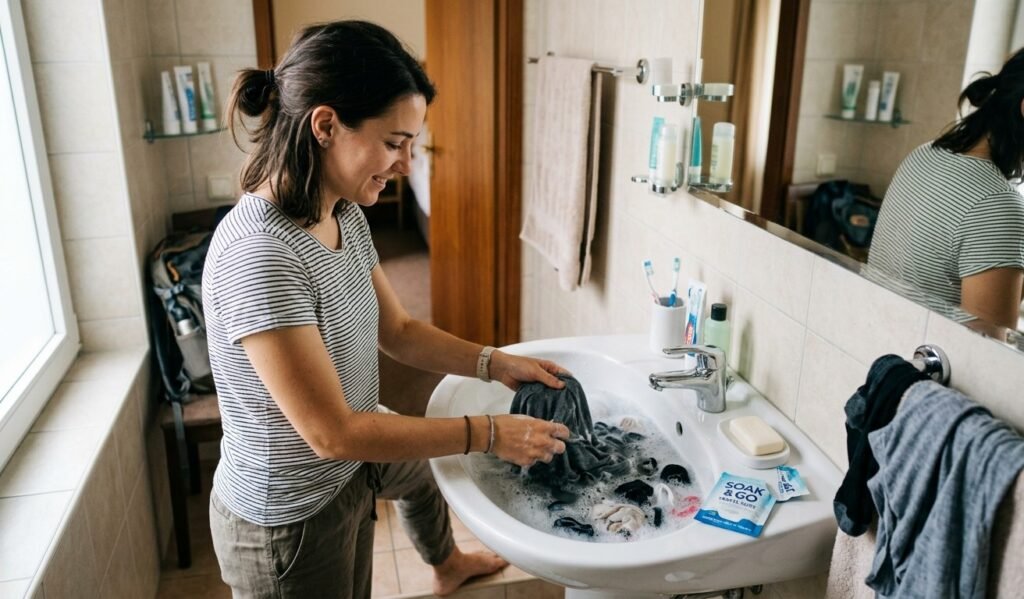 Paying a hotel to wash a single stained shirt is a total waste of your vacation budget. Tossing a few portable travel laundry soap packets in your bag lets you quickly wash things in the sink.