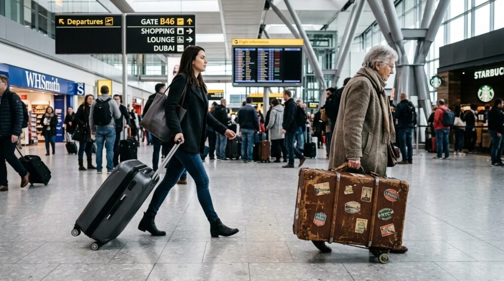 Vintage suitcases are cool to look at but they are a total nightmare to drag through a busy airport. Upgrading to a modern hard shell set with spinner wheels will make your life so much easier.