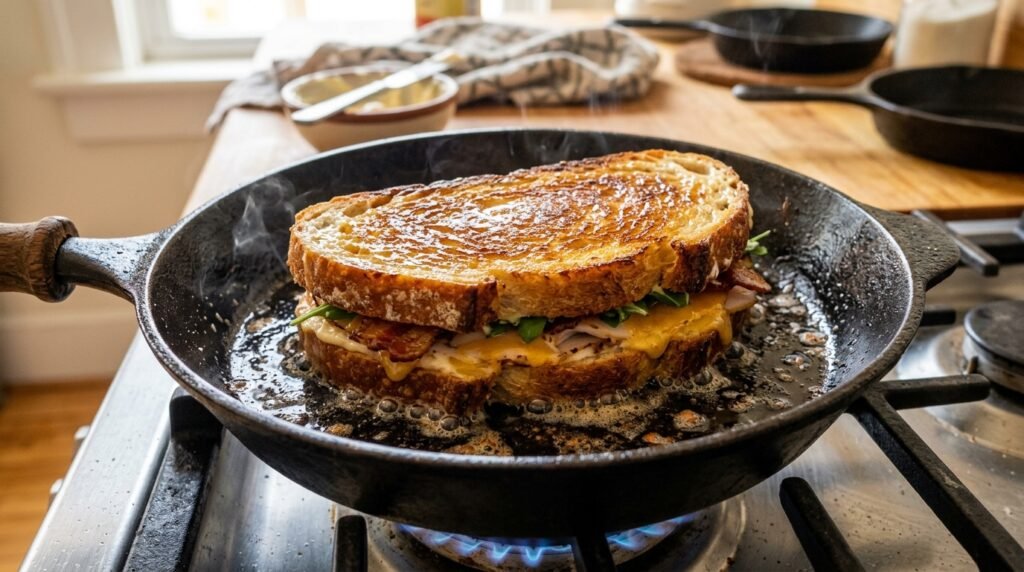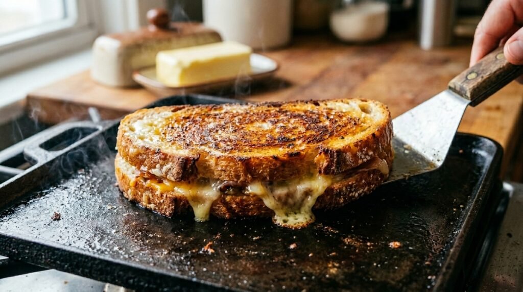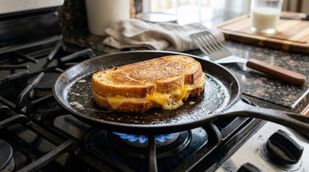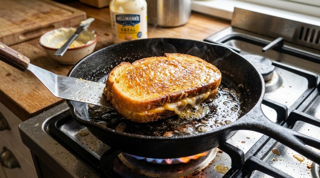 I used plain white sandwich bread and American cheese for every single test so things stayed completely fair. I cooked them in a cast iron skillet over medium low heat for about four minutes on each side to get that nice browning.