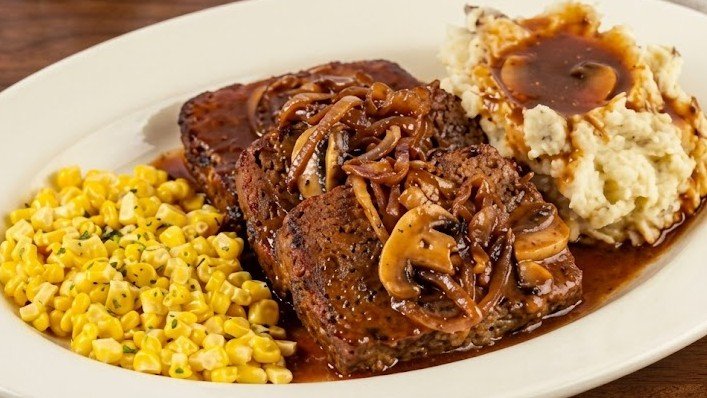 Fans constantly rave about this meatloaf which comes with mashed potatoes and is covered in a rich mushroom gravy and savory grilled onions. I thought it was very comforting and filling although some people might find it a bit heavy for a regular lunch outing.