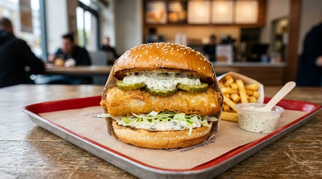 You really can not talk about fish sandwiches without bringing up the classic one from McDonald’s because it has been around forever. It is a very simple square patty with half a slice of cheese and a soft steamed bun that brings back a lot of good memories for people.