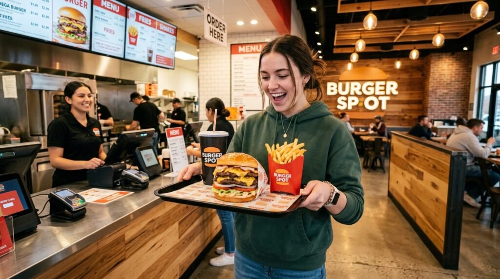 This burger has a thick piece of meat that stands out immediately. It is heavier than the standard options. The meal looks very solid and filling for anyone. The bun is strong and holds the heavy beef together without making a big mess at all.
