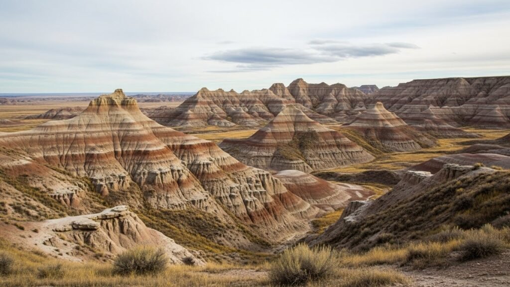 This part of eastern Montana has quiet land with pointed hills and old fossil sites. It may suit camping trips, where cliffs show natural stripes and the night sky feels wide, dark, and full of steady stars.