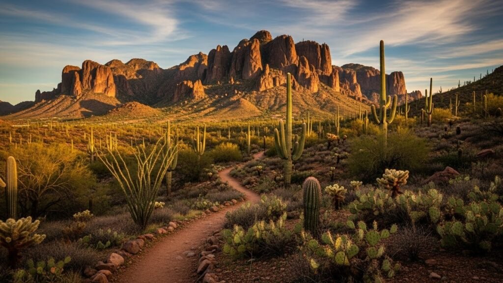 Instead of following the usual crowds in Phoenix you can drive east to find stunning cacti and sweeping views that stretch out for miles. The desert dazzles here in the fall and trails like the Hieroglyphic Trail may lead you to beautiful petroglyphs near a quiet waterfall.