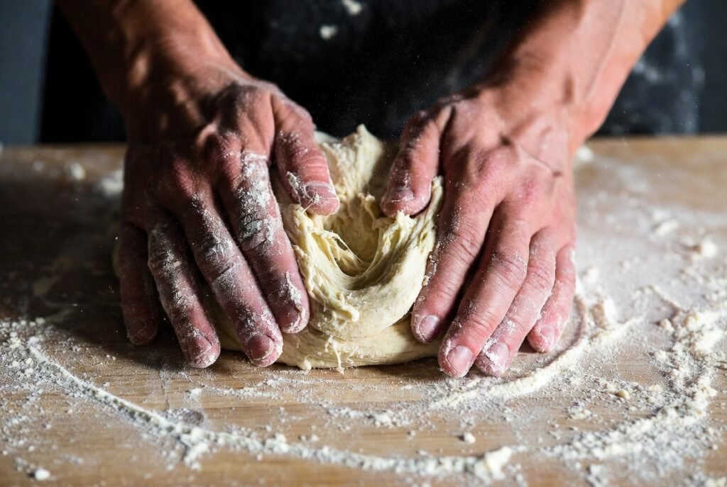 A bowl should be prepared by mixing bread flour, instant yeast, warm water, salt and olive oil. The dough is blended until a sticky, shaggy batter is obtained – this is the factor that provides the dough with its light crumb.