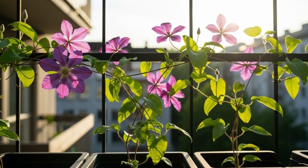 A climbing favorite – clematis – earns its “queen” nickname thanks to vibrant shades plus minimal footprint below. Leaves curl tightly around slim bars, fitting tight spaces like narrow posts or compact rails.