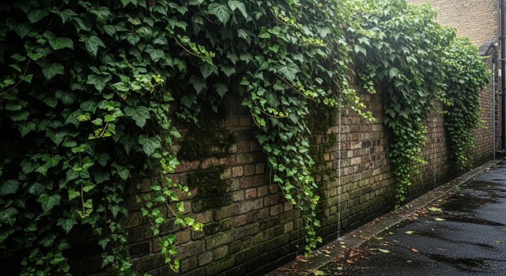 Out here, Ivy sticks like glue to stone surfaces – thrives where light barely reaches. Most plants fade under shadows, yet it pushes through without fuss. You find it draping crumbling brick or climbing rusty railings, forming lush strips on city walls nobody expected. Even tight passages fill with leafy life thanks to its stubborn roots.
