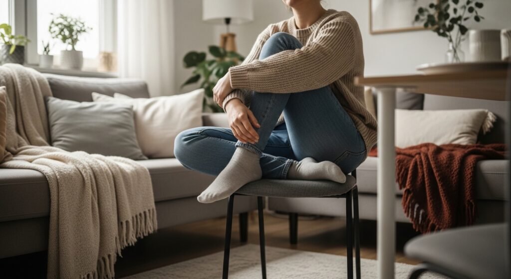 Some people tuck a foot under them to feel better when life is busy. It is a simple way to find peace and stay steady during the day. This small habit provides big comfort when you are working hard or just trying to stay focused.