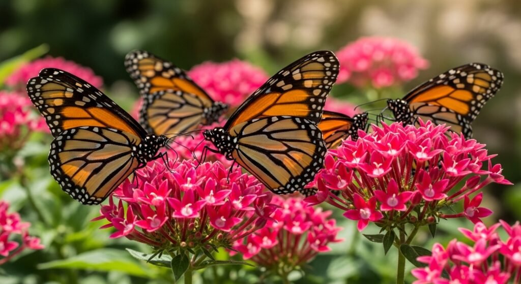 Pentas are plants that develop flower masses in the form of stars full of nectar. This is because the butterflies are known to visit these bright red, pink and white flowers. They thrive well in warm temperatures and they are in blossom at all times.