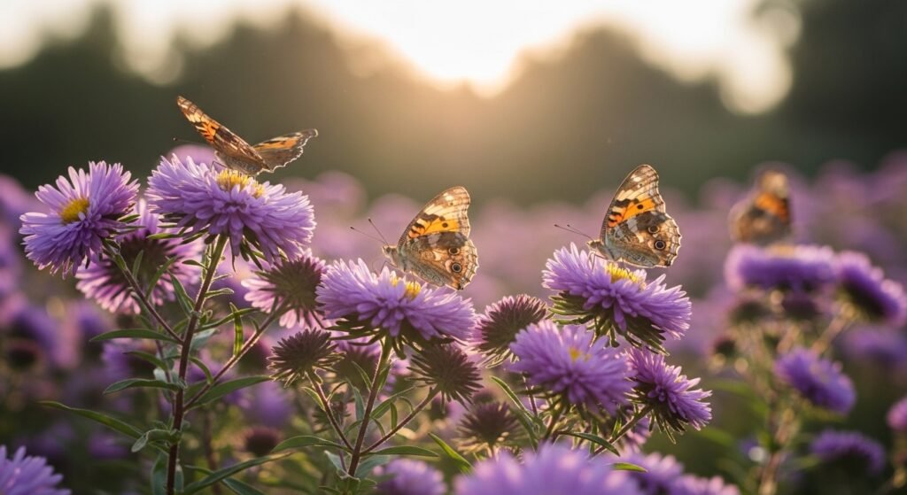 The aster is also a late-season plant, and children who have already died provide nectar there. Their blossomed daisies trap passing butterflies in search of energy. The autumn gardens include the purple and pink forms.