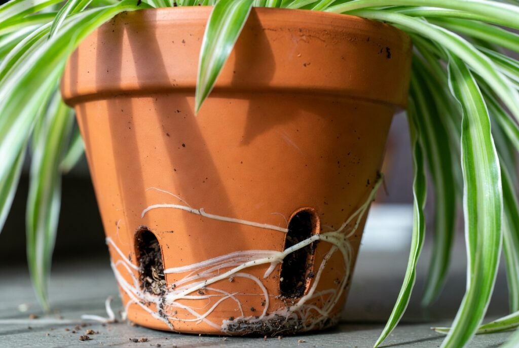 Root congestion can limit the absorption of water and cause water stress. When roots fill up the pot, the pot could be repot to a slightly larger pot where fresh soil could be added and this will lead to a healthier plant. New soil also decreases minerals build up.