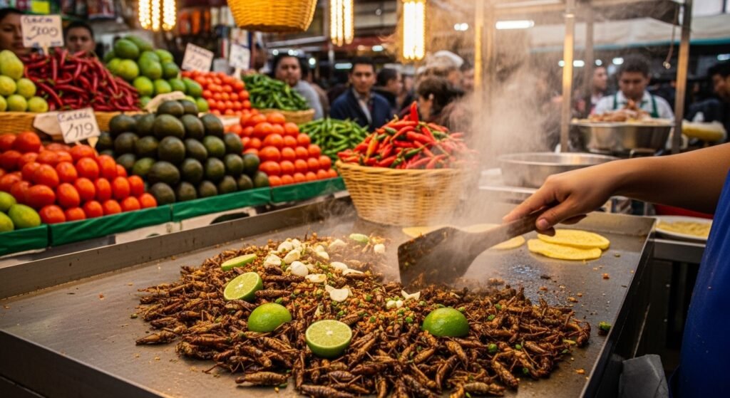 These little bugs are a famous snack called chapulines. Cooks toss them on hot metal plates with salt and peppers. They add garlic and lime to make them zingy. Locals grab a bunch to eat or use them to make their meals feel more crunchy.