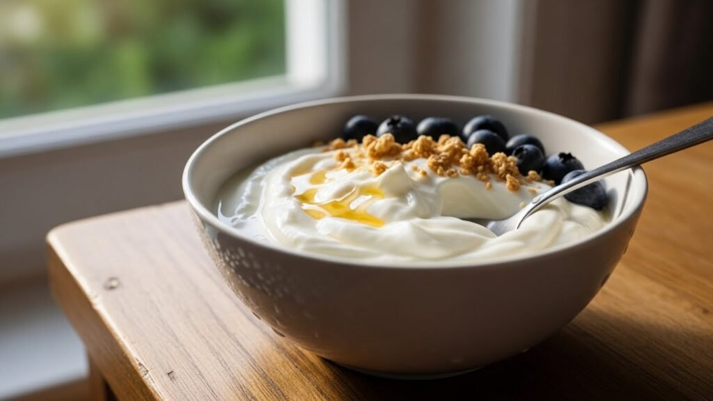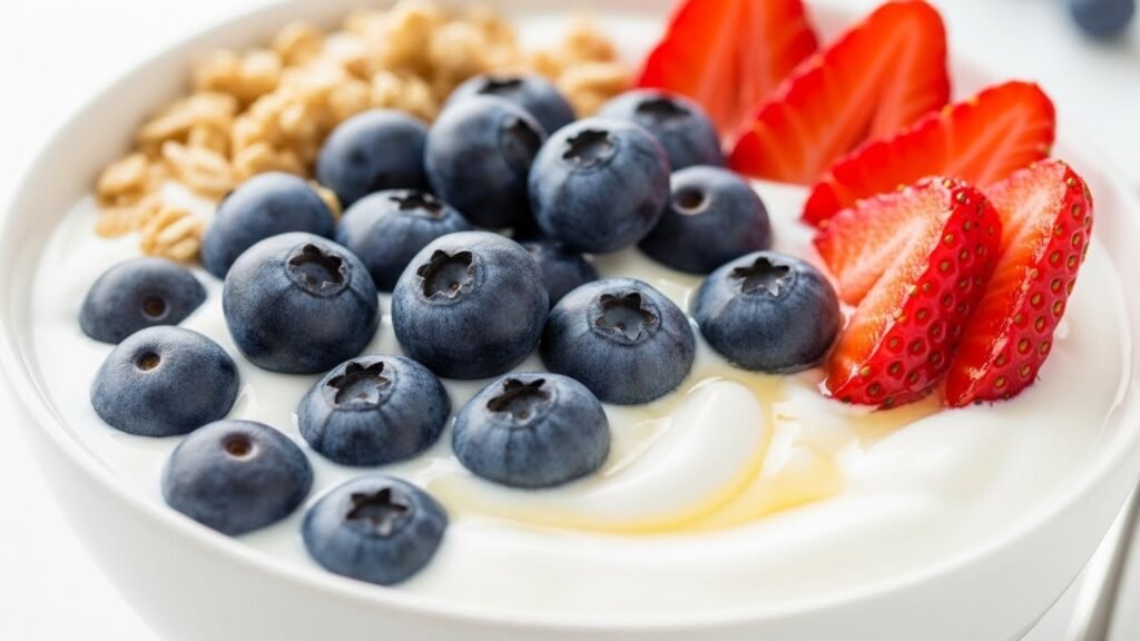 Adding blueberries or strawberries to yogurt gives a mild sweetness without changing the base too much. The berries mix in fast and keep things simple. This small addition brings color, soft texture, and a familiar fruit taste many people like with their usual breakfast bowl.
