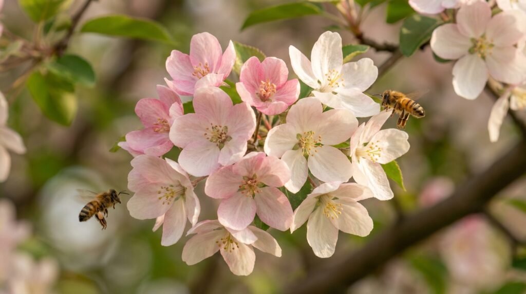 The crabapple trees are very welcome due to their spring blossom that changes between white and dark pink. These are not just flowers that beautify the scenes following the winter but they also appeal to insects such as bees that are essential in supporting healthy ecology.