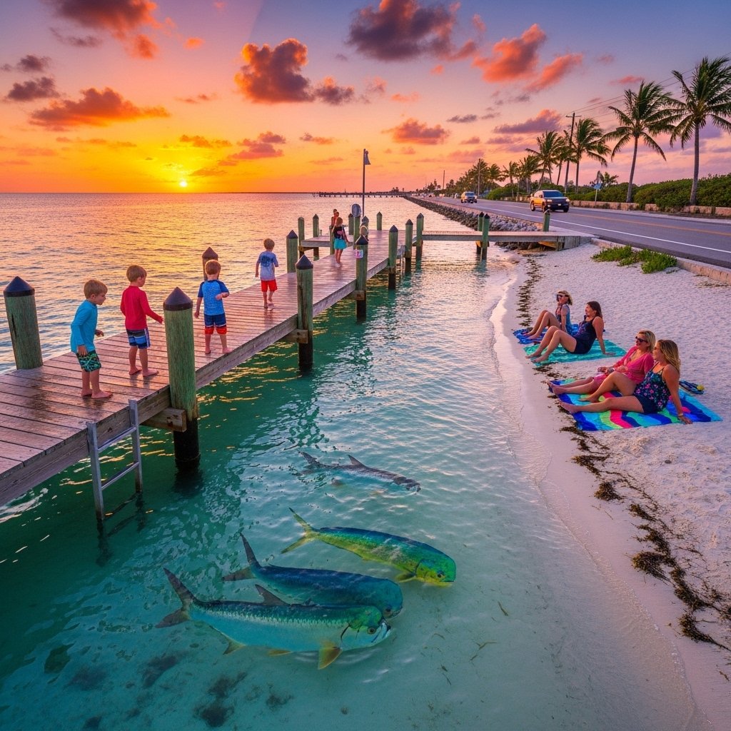 This road trip goes over the ocean and looks like magic. Families can jump in the water to cool off. You might see big fish at a dock or visit sick turtles getting better. It helps everyone stay calm while looking at the colorful evening sky.