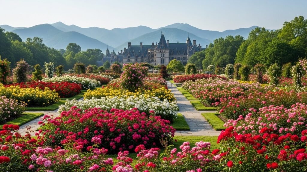 Located in North Carolina on the famous Vanderbilt estate these gardens were designed by the same man who did Central Park in New York. The rose garden and the huge glass conservatory stay beautiful throughout the changing seasons and offer great mountain views.
