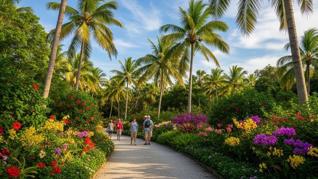 Fairchild is a great place to visit if you love looking at rare plants and huge trees. You can see many bright flowers that grow in warm weather there. The butterfly area is amazing because thousands of them fly around while you walk through.