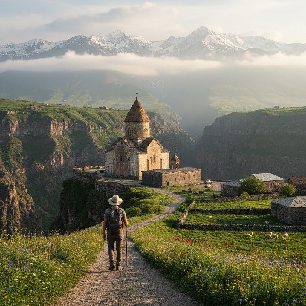 You get half a year in Armenia. The old churches are amazing and the lakes are pretty. Mountain air is crisp and the local food is really good for you.