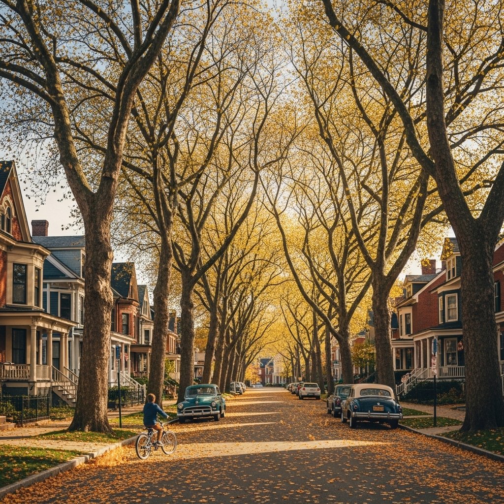 Maple trees are known for red leaves but many types turn a bright yellow instead. People plant them often because they block the sun when it is hot and look great in autumn. The yellow color can make a whole street look very bright.