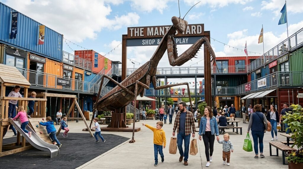 You will find a unique shopping center made from old cargo boxes with a massive metal bug guarding the entrance. The spot feels very welcoming for children thanks to the tall play area. Musicians often play on the stage which makes the whole place feel peaceful.