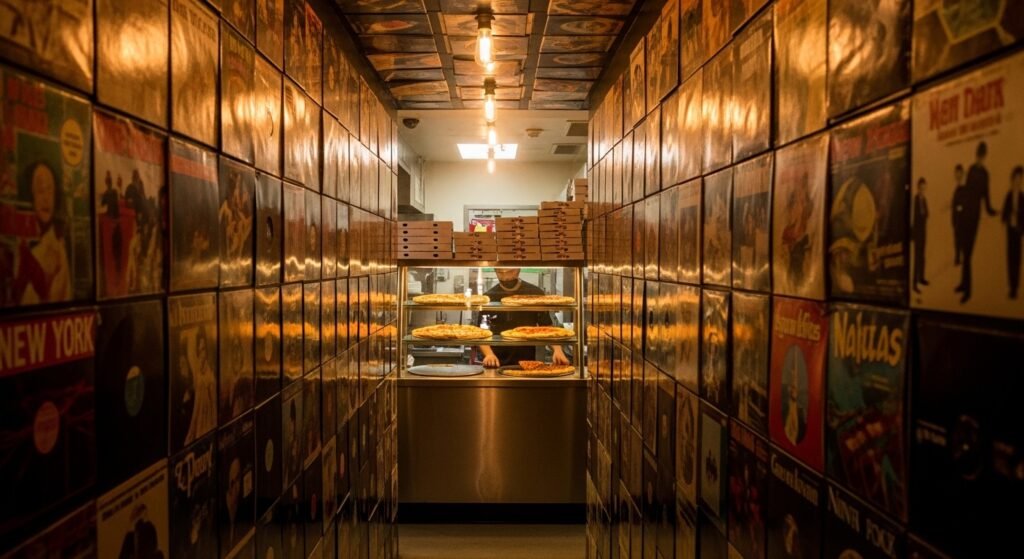 Located inside the Cosmopolitan hotel this pizza place has no sign so you have to walk down a long hallway lined with old records to find it. I thought the pizza was actually pretty decent for a late-night snack but I know other people might have different opinions on what makes a great slice of pizza so it is just my polite opinion.