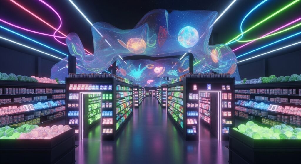 This is part interactive art display and part psychedelic grocery store that is completely wild to walk through. It is kind of hard to explain but you find secret passages behind products and it feels very surreal the whole time you are exploring inside it.