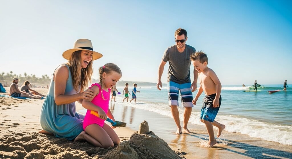 Parents love this beach because it is a very safe environment. There are no loud parties happening here which makes it perfect for a quiet day. You can see families having fun and enjoying the fresh air. It is a very gentle place to spend time.