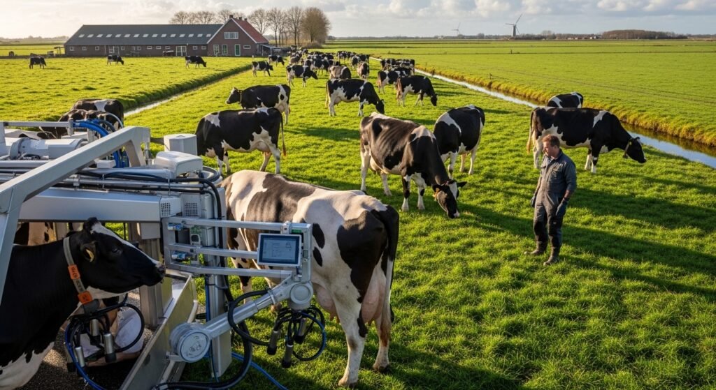 The country has a long history of raising cows on its lush green pastures which is why Dutch cheese is found in almost every grocery store. They use automated milking machines and GPS to keep track of their herds and make sure the milk stays top quality.