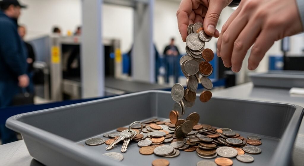 That small metal clutter inside your jeans or jacket pockets often makes the metal detector alarm go off and you have to go back through which wastes precious time. A simple trick is to put your coins and keys inside your carry-on or personal bag before you even get in line so you can just walk right on through the scanner.