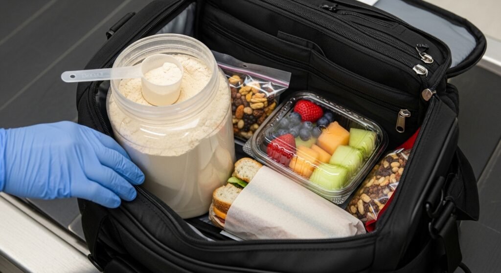 Certain solid food items and large amounts of powder like protein mix are quite dense and can look odd to the scanner so they may require some additional checks by the agents. While you don’t always have to remove these you should try to keep them together in one spot in your bag so they are easy for security staff to find and examine quickly.